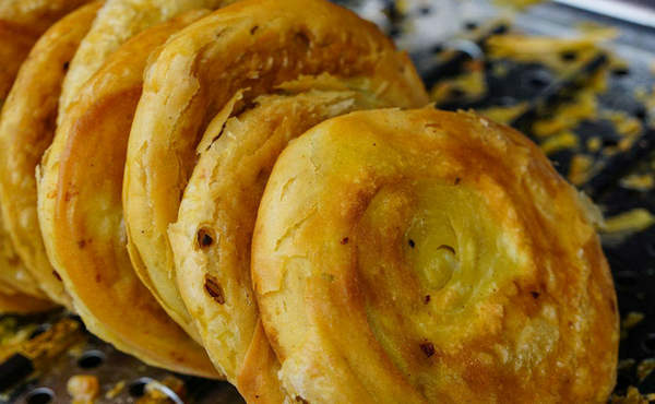 千层油酥饼是陕西汉族特色小吃。色泽金黄、层次鲜明、脆而不碎、油而不腻、香酥适口。相传,油酥饼是由唐代的千层烙饼,经历代厨师不断精心改进而成。经制酥、和面、制饼、煎烤而成。