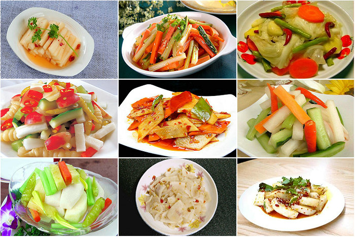学习泡:萝卜、包菜、黄瓜、姜片、藕片、小笋、海带丝、大白菜、鱼腥草、石花菜、海蜇、蕨菜、腐竹、泡椒凤爪等素菜类。
