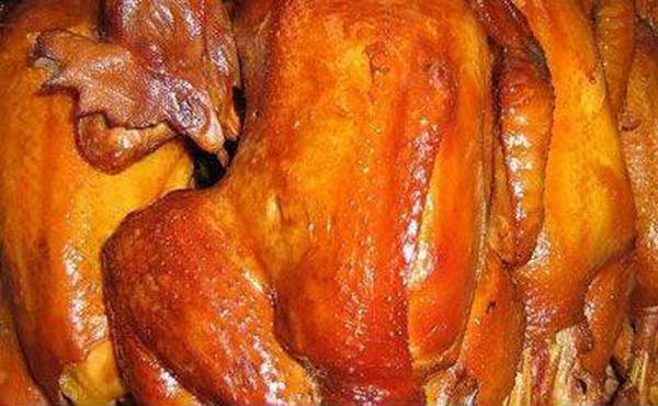 冯塘耿氏熏鸡是河南省淮阳独有的汉传统名菜,属于豫菜系。原料选用6个月龄的健壮柴鸡,精选20多种天然名贵香料和中草药,工序达10多道,纯手工加工。其特点是色泽金黄、皮脆骨酥、软烂鲜嫩、油而不腻、咸淡可口,有清淡的腊肉香味,并有健脾保健之作用