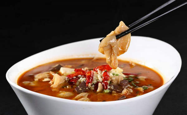 制作方法:猪大肠洗净,再煮至七成熟,然后换水再炖,炖时可加胡椒、味精、精盐和精心配制的一些中药材,炖时还可与猪血、豆腐等一起炖,加以荆芥或小蒜苗。